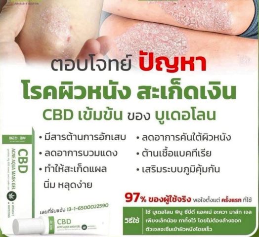 ผลิตภัณฑ์งานวิจัยของ รองศาสดาจารย์ ดร.วีระชัย พุทธวงศ์ บูเดอโลน พิบู ตอบโจทย์ปัญหา สิว ลดฝ้า ลดริ้วรอย สะเก็ดเงิน บูเดอโลน มีสารสกัด CBD 1% โดยน้ำหนักตามเกณฑ์ที่ อย.กำหนด