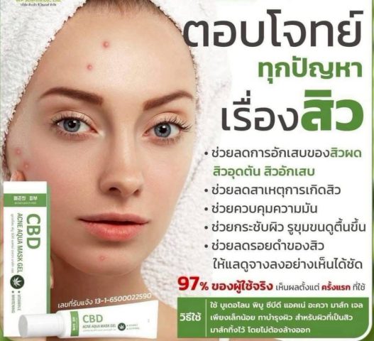 CBD Acne Mask Gel เจลมาส์กลดสิวจาก CBD ธรรมชาติ 100% ช่วยลดการอักเสบของสิว ลดรอยแดง และป้องกันการเกิดสิวใหม่ เหมาะสำหรับผิวที่มีปัญหาสิว ผิวมันและผิวผสม ใช้ง่าย ไม่ทำให้ผิวแห้ง