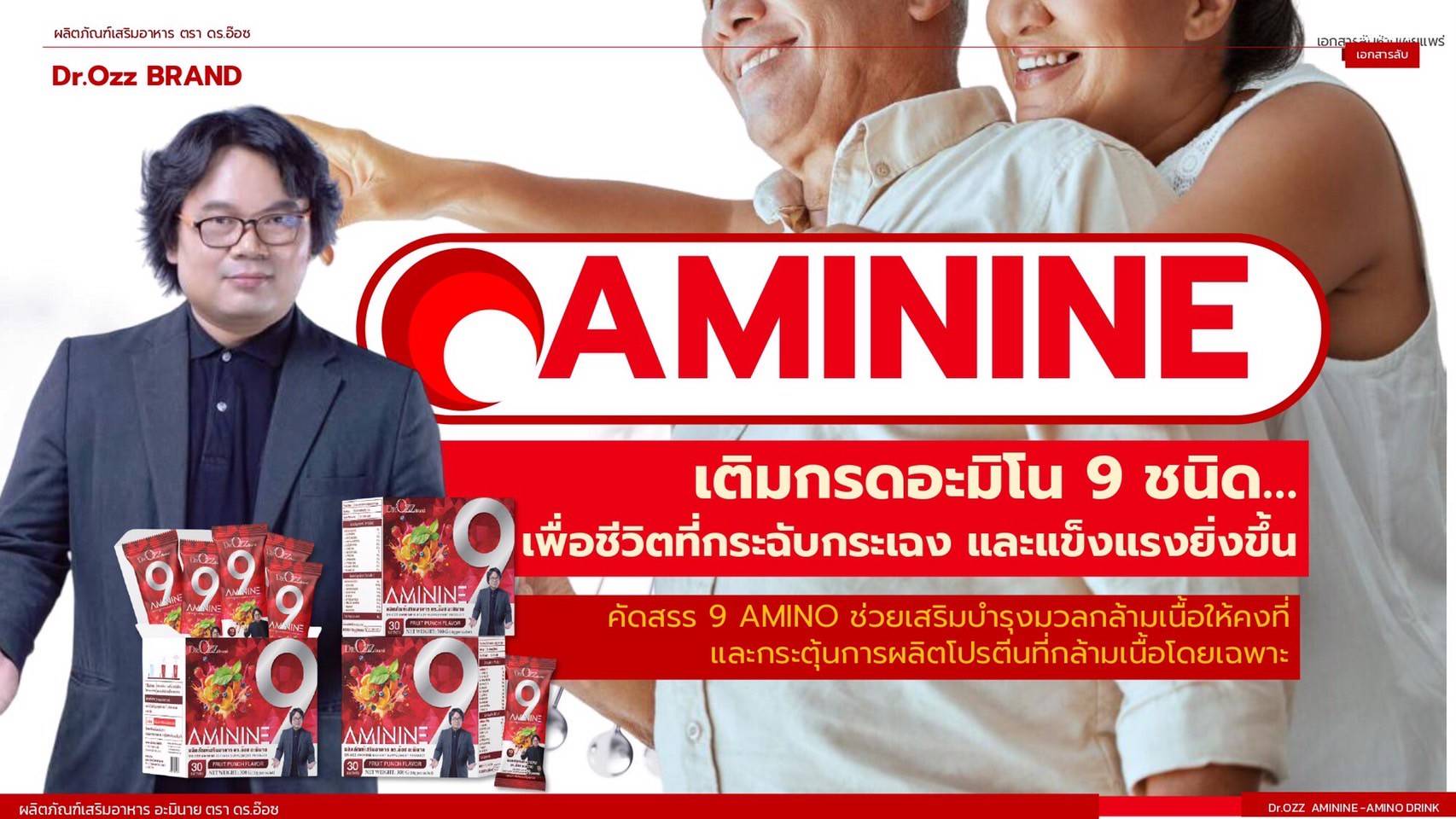 AMININE (อมินาย) ผลิตภัณฑ์เสริมอาหารที่ผสานพลัง 9 กรดอะมิโนจำเป็น (9 Essential Amino Acids) ที่ร่างกายสร้างเองไม่ได้ คัดสรรมาเพื่อการบำรุงลึกระดับเซลล์ ช่วยฟื้นฟูร่างกาย เสริมสร้างกล้ามเนื้อ และชะลอความเสื่อมตามวัยอย่างมีประสิทธิภาพ